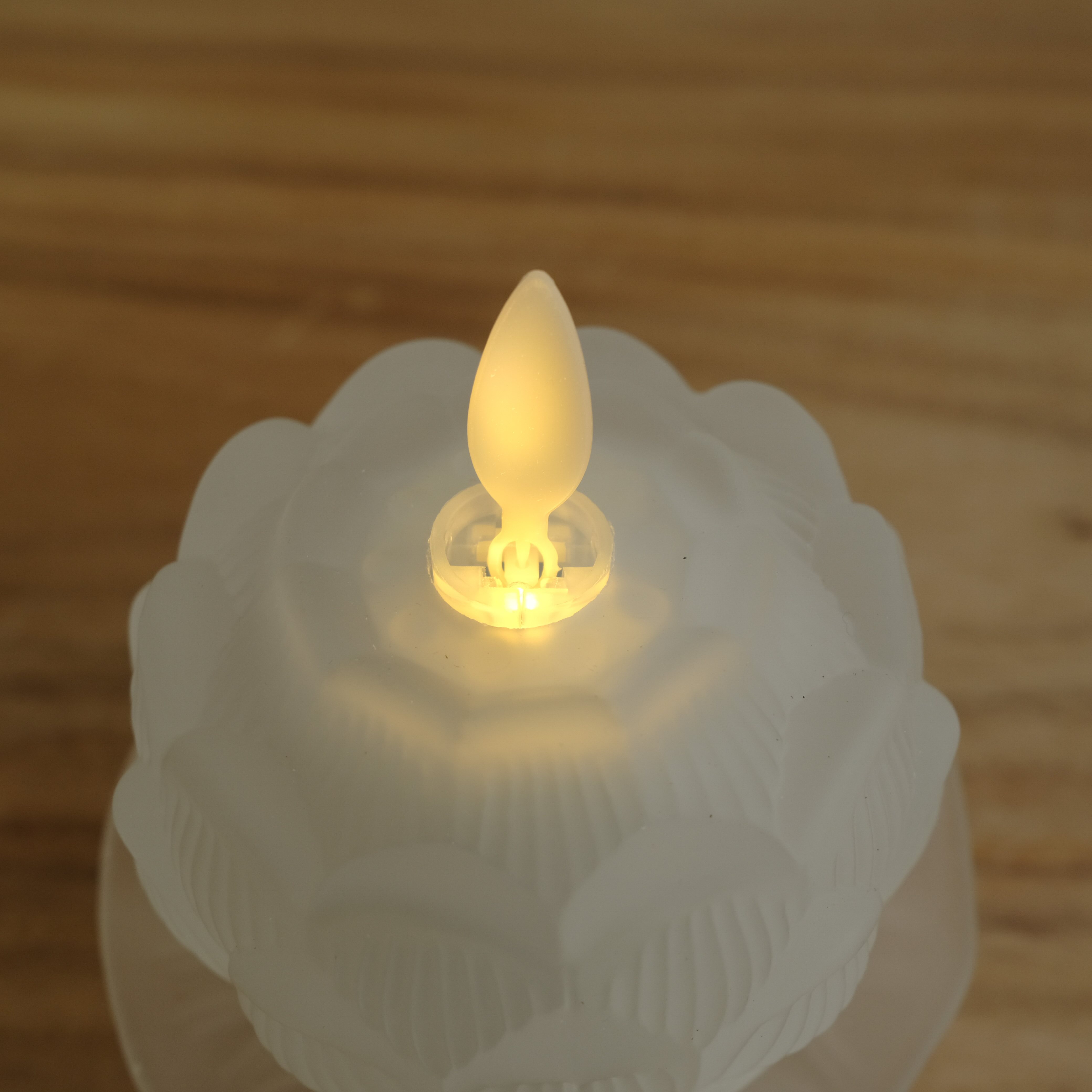Bộ 2 đế nến hoa sen dùng pin AA - Bộ đồ thờ bằng thuỷ tinh phủ mờ.